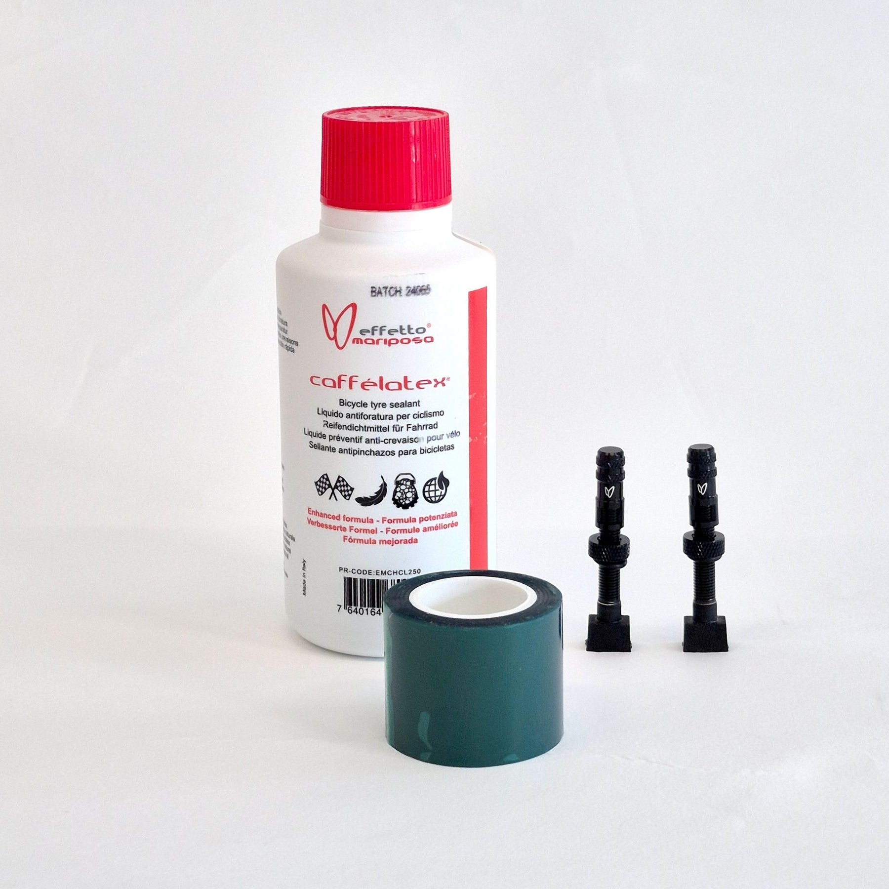 Le kit idéal pour garder votre système tubeless fiable. Le préventif Caffélatex colmate rapidement les crevaisons tout en offrant un poids et des performances adaptés à la course. Le ruban tubeless et la valve permettent de remplacer rapidement les pièces usées – parfait pour l’entretien saisonnier et garantir une étanchéité durable.