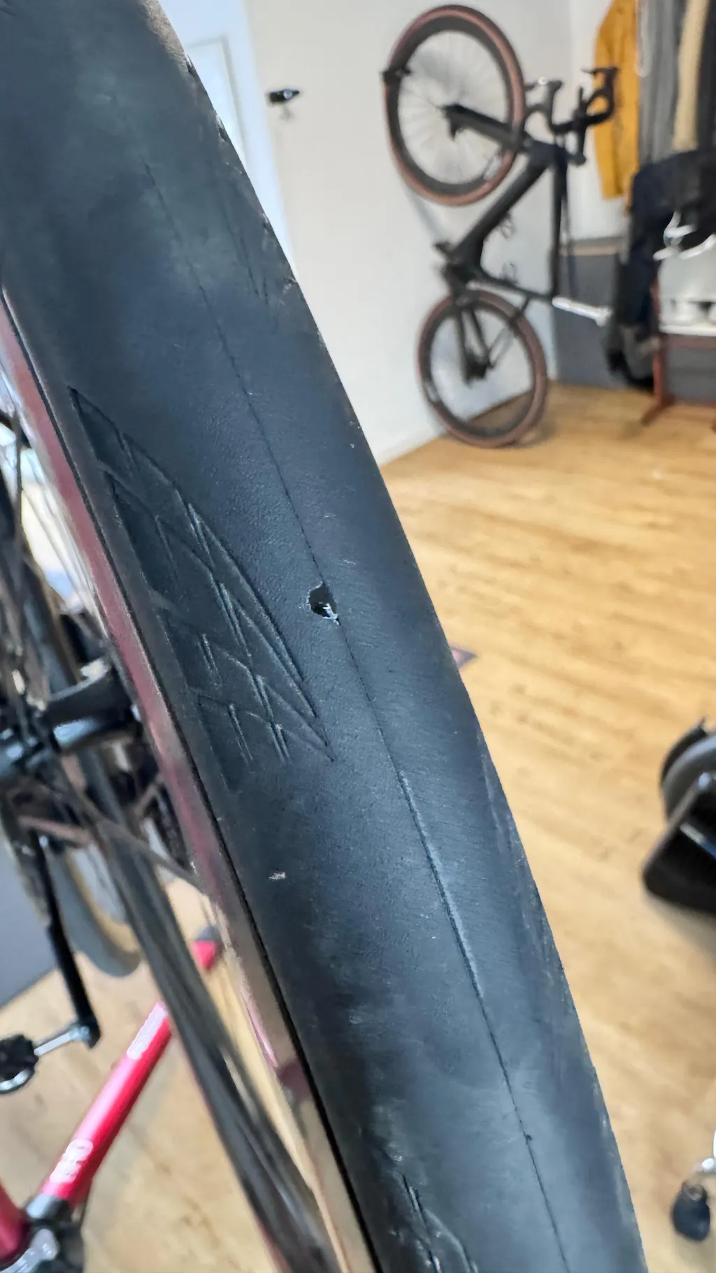 Minimales Loch. 1mm klein. Es drückt das Sealant heraus. Über Nacht ohne zusätzlichen Druck hängen lassen. Am Morgen ist das Loch noch immer nicht verschlossen. Das Sealant nicht getrocknet. Etwa 2 Bar drauf und es tritt mehr Sealant aus. Somit nur schade, dass es nicht funktioniert. 1l für nichts. Vertrauen geht anders.